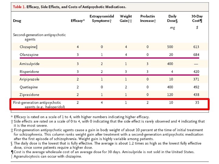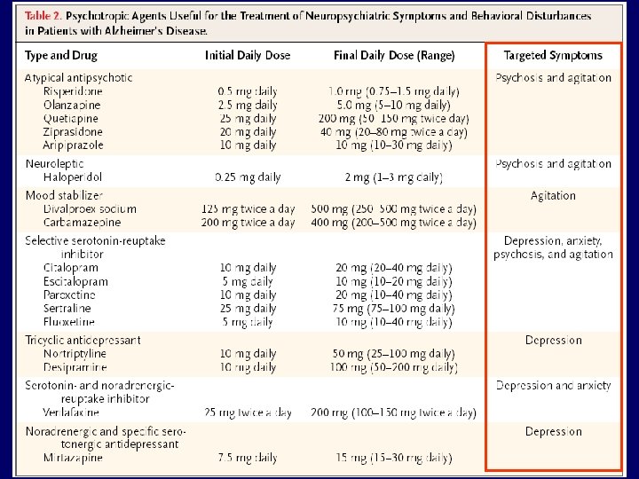 Atípicos vs. típicos • • Mejor tolerados (menos efectos extrapiramidales agudos y crónicos, prolactina, . . . ): menor abandono del tratamiento (64% vs 75% a 18 meses) Exacerbación de otros efectos adversos: • • Mas eficaces en síndromes negativos Clozapina más eficaz en la esquizofrenia resistente • • Mucho más caros Visado (accidentes cerebrovasculares en ancianos) – Aumento de peso (7 -10% peso en 10 -30% pacientes) – Hipercolesterolemia – Diabetes tipo 2 – Pautas singulares en niños y adolescentes