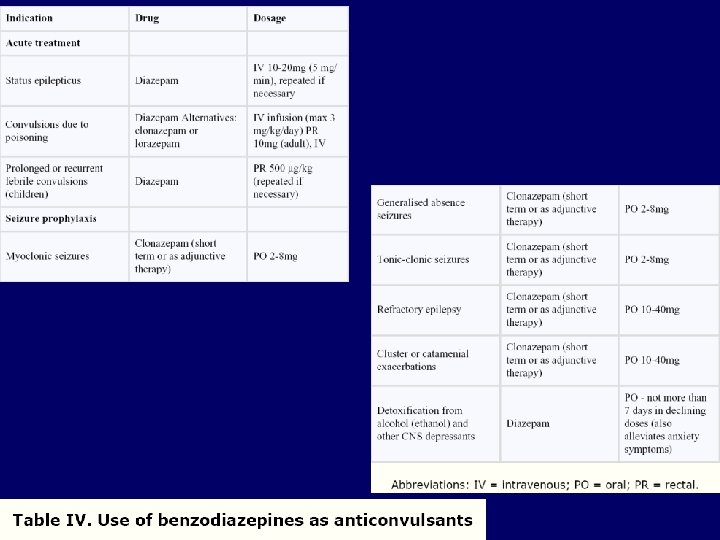 La combinación de BZD y valproato puede originar cuadros psicóticos Tratamiento agudo: Diazepam Profilaxis: Clonazepam Clobazan medicación de segunda linea en la profilaxis La aparición de toleracia limita su uso