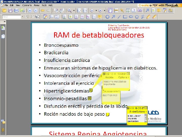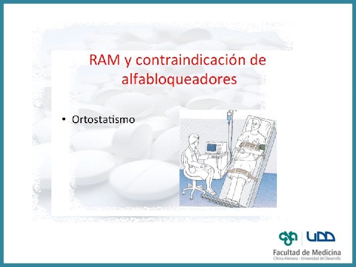 RAM de hidralazina • Cefalea, flushing, congestión nasal, taquicardia y palpitaciones, isquemia e infarto cardíaco: se evitan con uso conjunto con betabloqueador • Uso crónico: Lupus like