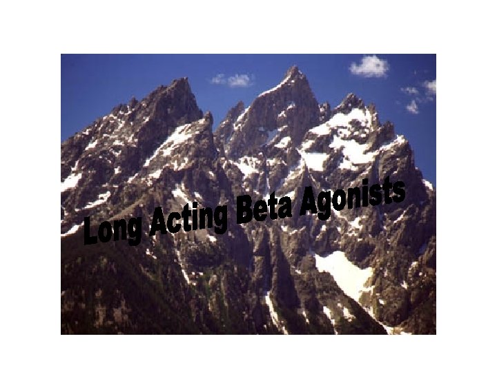 Salmeterol (Serevent) • Long acting betaagonist/bronchodilator • Binds to an exosite adjacent to the regular beta receptor • Slower onset of action – maximum effect in 3 hours • Longer duration of action (12 hours)