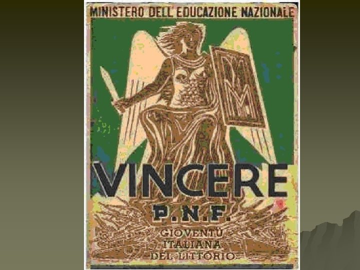 Social Policies Citizens were bombarded with slogans glorifying the state & Musso. u “Believe, obey, fight” were blasted from loudspeakers. u “A minute on the battlefield is worth a lifetime of peace” was the fascist position. u Women were expected to be “baby machines” u Women who bore 14 or more children were rewarded w/ medals from Musso himself. u