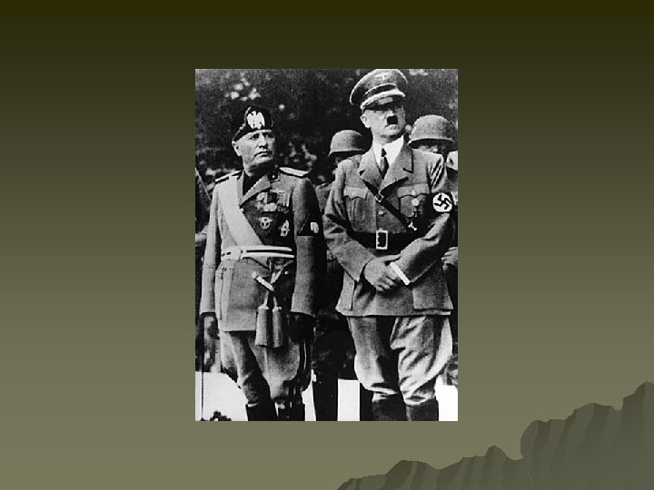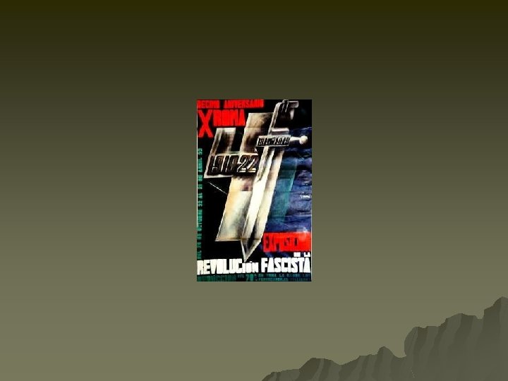 Mussolini – Il Duce u u u Organized the Fascist party Spoke of reviving Roman glory Organized “black shirts” (combat gangs)which used violence & terror against political opponents such as communists.