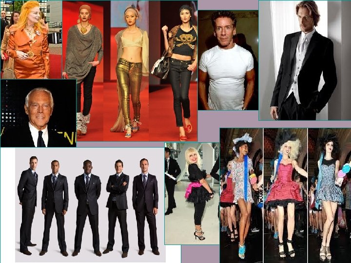 • • • Fashion the way of dressing that is popular at certain time the main concern of people who want to be “in”. It changes very fast and it is quite difficult to say what is still trendy or what is already out of fashion. People, especially young, like to follow new fashion trends through fashion magazines Cosmopolitan, Elle, Vogue) or from fashion TV channels and shows. Fashion professionals called fashion designers invent new patterns, styles and look for new combinations (Calvin Klein, Giorgo Armani, Viviene Westwood, Gianni Versace, etc. are famous all over the world).