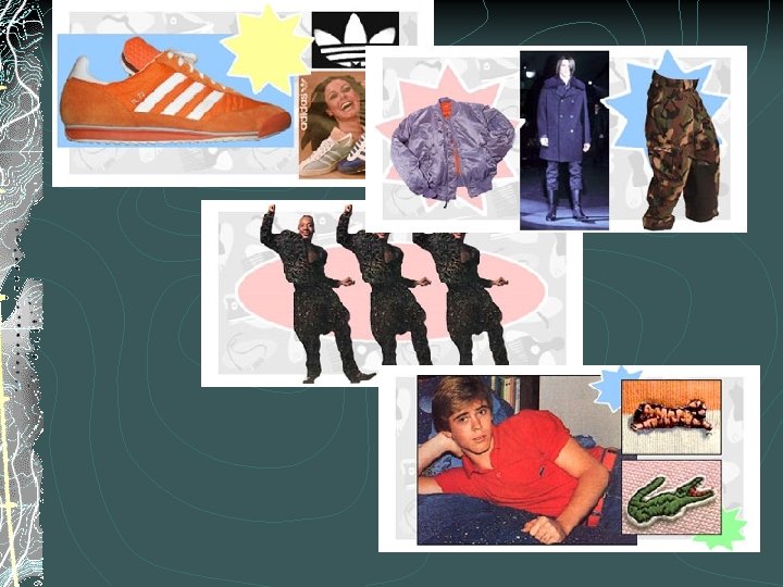 80’s - Brand Names Brands began to cover all clothing. The name on apparel was usually more important than the item itself. Guess? Jeans hit the stores in 1981. Swatches hit big in 1983. The first Benetton shop opens in the U. S.