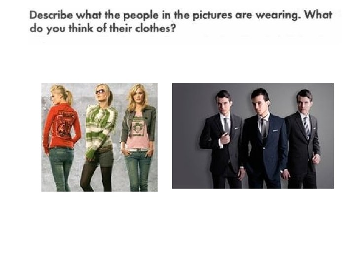1. Jim says, “I like fashionable things. ” 2. Tina says, “Fashion is not important to me. ” 3. “Students should wear a proper outfit in school!” the teacher exclaims. 4. Mother asks, “Are you going shopping? ” 5. Tom says, “I don’t want to stand out. ” 6. Jane says, “I go to discounts shops for designer clothes. ”