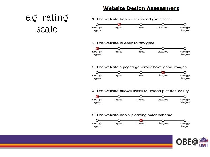 • P 3 -P 7 Best assessed in a face-toface situation • • Effectively observed through videos, demonstrations, or with pictures of each step in the sequence. For P 1 and P 2, can be assessed using lab report or written lab test. Grading can be done by using: e. g. q checklist To differentiate from COGNITIVE q rating scale learning domain!! q rubrics