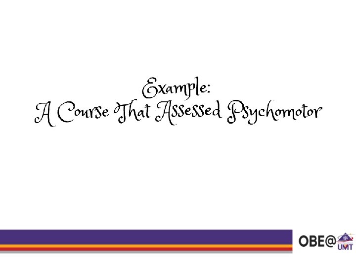 • Apart from the cognitive and affective learning domains, the students can also be assessed using the psychomotor domain. • Thus, this module is to provide overview of the assessment methods addressed by psychomotor domain. • This module is only meant to guide the lecturers on how to apply the psychomotor domain for their own course. • The lecturers can be creative in designing their own assessments. • The assessments mentioned are not rigid but they are flexible as long as they are aligned to the intended learning outcomes.