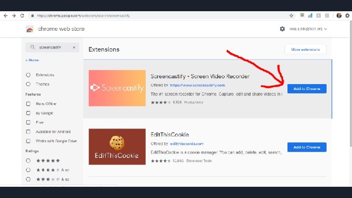 Getting Started Screencast-O-Matic >Use Google Chrome >Chrome Webstore Matic >Screencast-O-