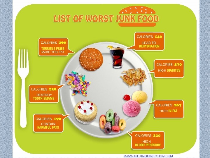 Experts say that fast food makes people overweight and even obese and elevates the risk of diabetes and cancer. If your food includes hamburgers, chips, hot dogs, pizzas and fizzy drinks like Coke, Pepsi, Sprite and others, you are facing a serious problem threatening your health. Moreover, there is a risk of food poisoning.