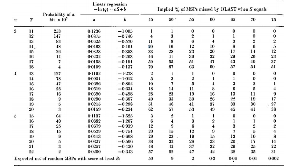 BLAST – Stage 2 – scanning the text • Now the text sequence(s) is scanned for each word in the list of words from step 1. • How can it be done?