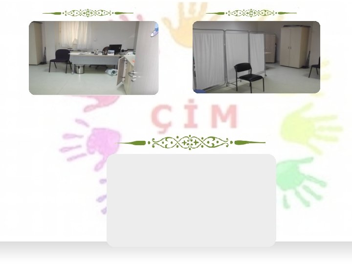 Muayene • Çocuğun muayenesi merkezde bulunan hekimler (Adli Tıp Uzmanı, Çocuk Psikiyatristi ve Çocuk Hekimi) tarafından yapılır. • Vücudun tümü (cinsel organlar da dahil olmak üzere) detaylıca muayene edilir, gerekli durumlarda fizik bulgular görüntülü olarak kaydedilir.