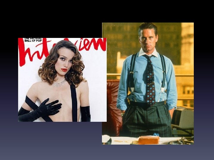 80. léta • Kultura “yuppies” – YUP=young urban professional • 25 – 35 let, důraz na kariéru, profesní úspěch, nadprůměrné příjmy • Nárůst konzumpce, soustředění se na zdravý životní styl, fitness, definování sociálního statusu skrz tělo a šaty • Pánské lifestylové magazíny: The Face, GQ, Arena, L’uomo Vogue, Mens Health, FHM • Mužské tělo začíná být prezentováno jako objekt pro pohled – a to prioritně nikoliv pro ženský kontemplativní, ale pro mužský aspirační