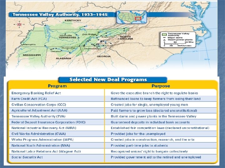 New Deal Programs Fed. Gov’t created AND paid for many agencies: n For ex: 1. Civilian Conservation Corps (CCC) – n 2. 3. Tennessee Valley Authority (TVA) – Works Progress Admin. (WPA) --