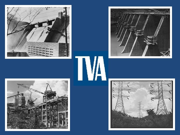 Tennessee Valley Authority (TVA) • It helped transform the Tennessee River Valley from poverty to productivity. For years, flooding had caused massive problems and made farming difficult. This built dams throughout a seven-state region to control floods and generate electricity to homes and farms. Residents were thrilled to have electricity, and it attracted industries and jobs to this very poor area. It still provides power to the region today.