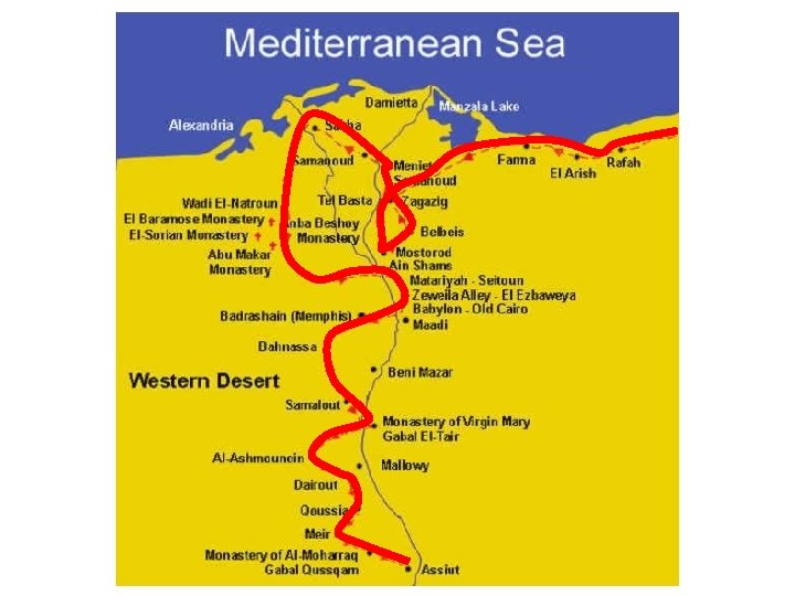FLIGHT TO EGYPT at BASTA … • St. Mary asked for water • People said: “NO!” • Our Lord Jesus drew on ground with His fingers … • Water came out!