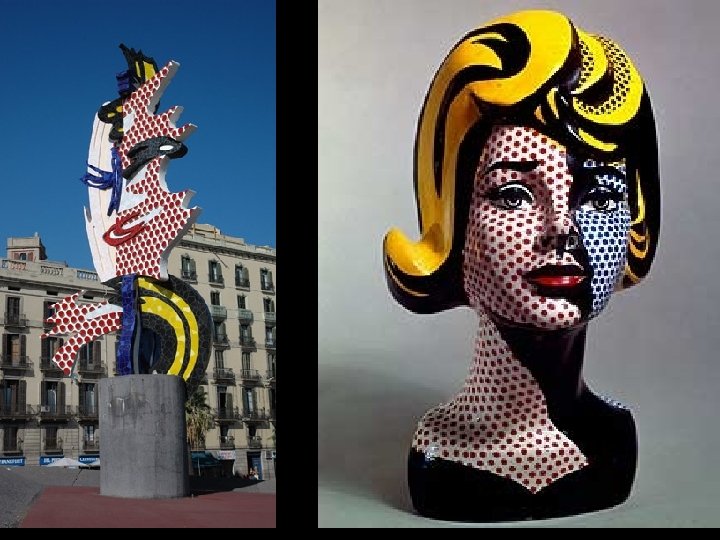 Roy Lichtenstein (1923 -1997) Created art with a COMICBOOK style Colors are basic, blackoutlined Skin colors created with BENDAY DOTS… Just like the COMIC BOOKS!