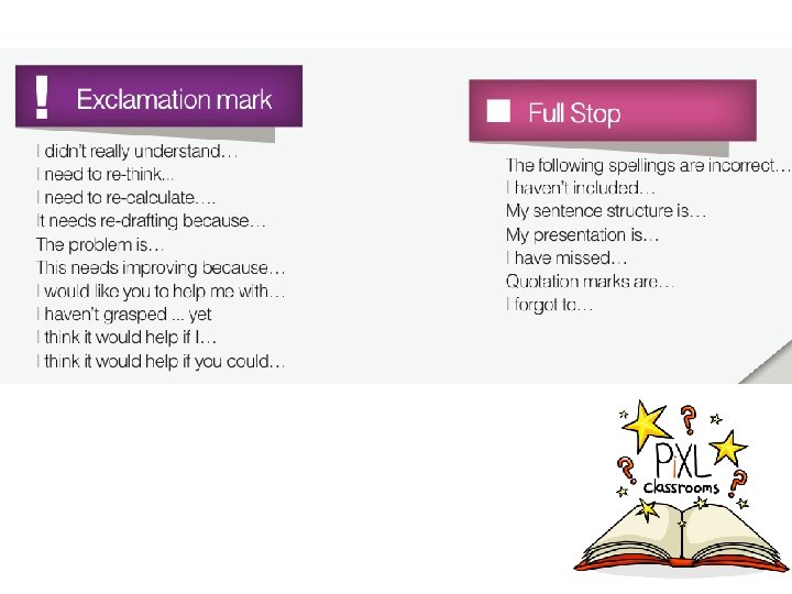 How it works in the classroom • Teacher marks the work in 1 minute using symbols • Students comment on reasons for symbols • Teachers mark the students’ reflective comments • Students can identify their own areas of weakness • Teachers can identify patterns