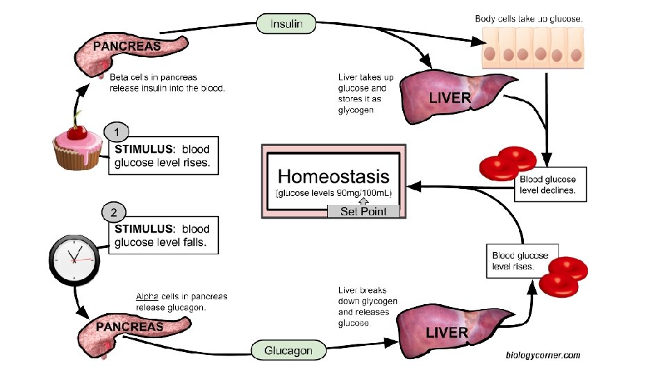 How does homeostasis happen? • The body has complex feedback control systems (homeostatic mechanisms) to maintain homeostasis/keep the internal environment constant. • Feedback control systems depend on different body systems / organs working together. • Feedback systems can be positive (increases the magnitude of change) or negative (decreases the magnitude of change). Negative feedback is the most common type of feedback loop in organisms. Negative and Positive feedback loops