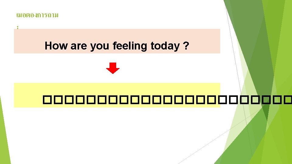 เมอตองการต อบ : I’m + ( Feeling ) I’m sad. How are you feeling today ? I’m happy.