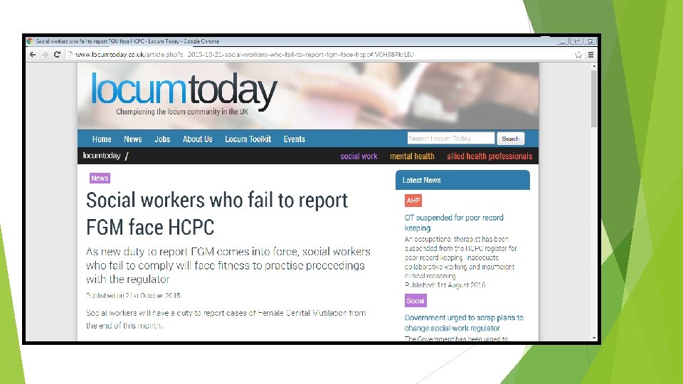 Aim: To understand FGM as a form of child abuse and to be better able to identify and respond to it.