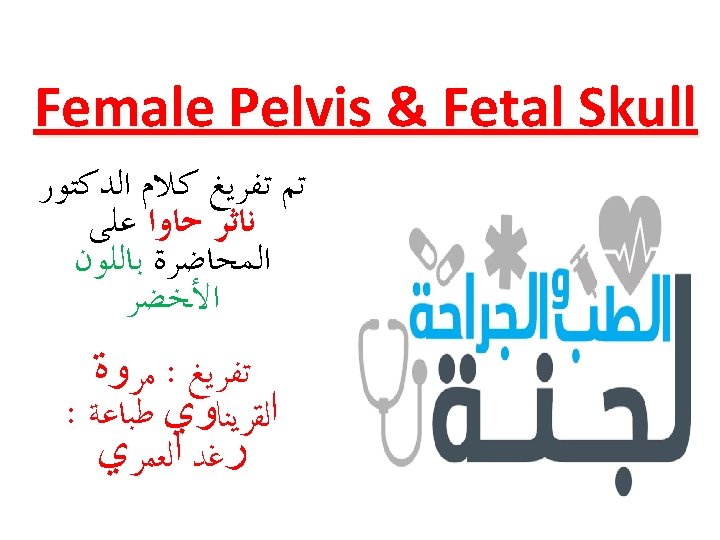 Fetal skull Ovoidal in shape 1. vault: extends from the supra-orbital ridges to the nape of the neck. 2. face: from the root of the nose to the junction of the head and neck. 3. Base. The best method to diagnose cephalopelvic disproportion is by delivery Why we concentrate on head not body ? In body no moulding just minimum reduction // in head – moulding For best engagment ? Longitidual > transverse >>more flexed = ﺑﺎﻟﻄﻮﻝ Deflexed = ﺑﺎﻟﻌﺮﺽ Fully extended = ﺑﺎﻟﻄﻮﻝ