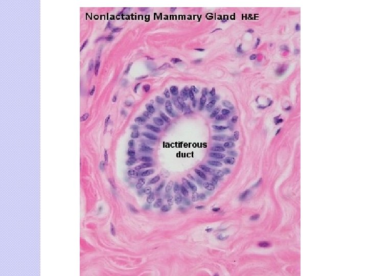 INACTIVE MAMMARY GLAND Sparse glandular tissue �Consist of tubules having the appearance of ducts •