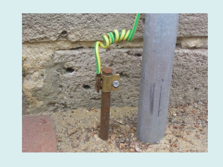 Aterramento • A palavra aterramento refere-se à terra propriamente dita. O aterramento é o fio ou a barra de cobre enterrado, onde passa a corrente elétrica para o solo. Quando se diz que algum aparelho está aterrado (ou eletricamente aterrado) significa que um dos fios de seu cabo de ligação está propositalmente ligado à terra. Ao fio que faz essa ligação denominamos "fio terra".