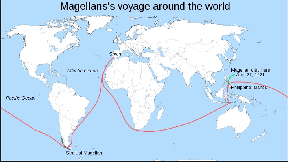 The Voyage Magellan explored from 1519 -1521 Magellan left from Portugal, and he landed and was killed in the Philippines. Magellan’s crew finished the voyage without him.