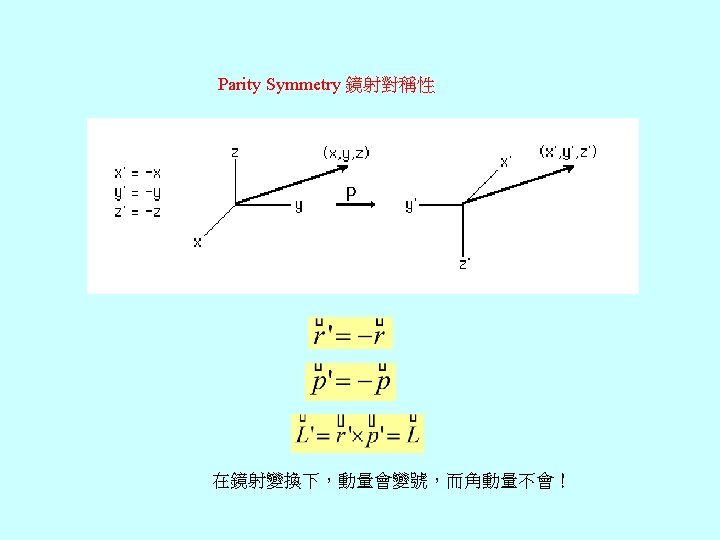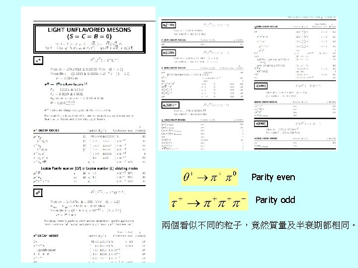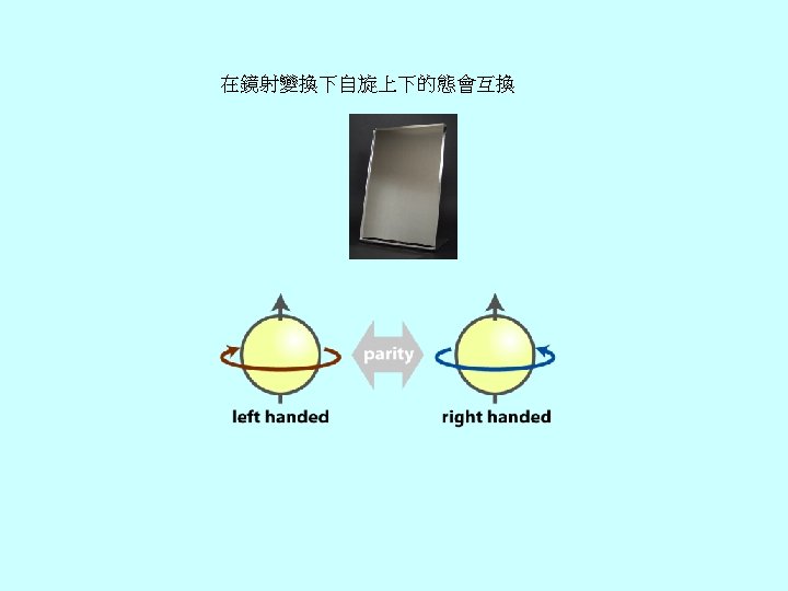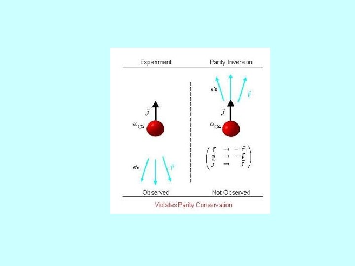 長久以來,大家都認為物理是鏡射對稱 Parity Symmetric. I do not believe that the Lord is a weak left-hander. I am ready to bet a very large sum. Pauli 一直到 1956年 Parity symmetry is violated (broken) in weak interaction.