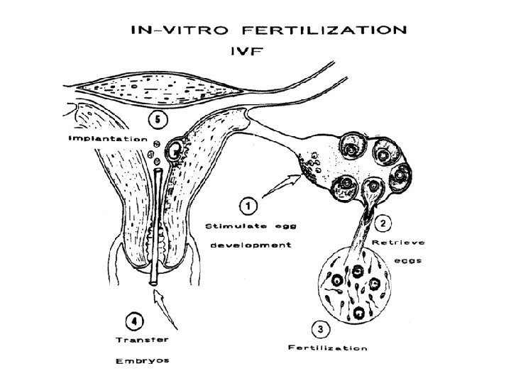 Basic Steps in IVF • Ovary stimulation • Egg retrieval • Sperm retrieval-wash sperm • Fertilization • Embryo transfer • Progesterone