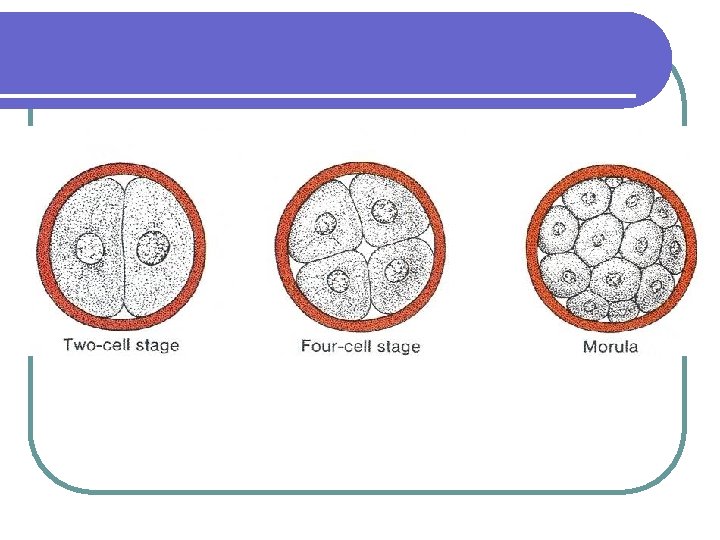 Cleavage l Two celled zygote l Mitotic divisions l Morula Inner cell mass – embryo proper l Outer cell mass – Trophoblast - Placenta l