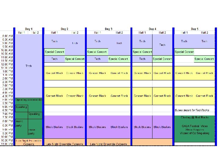 Goals for Artistic Programming Festival 2012 • Energize programming by creating opportunities for performances beyond the traditional 30 -min performances • Encourage creativity, community building and collaboration between choruses • Infuse more flexibility into Festival schedule • Create a dazzling Opening and Closing Ceremony