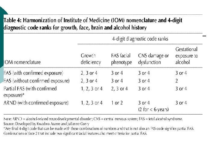 4 Digit Diagnostic Code: Rank 4 3 2 1 Growth Face CNS Alcohol Exposure
