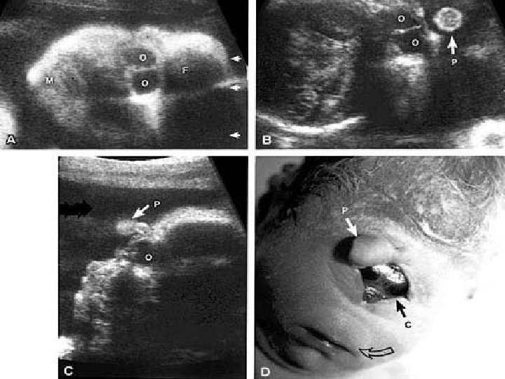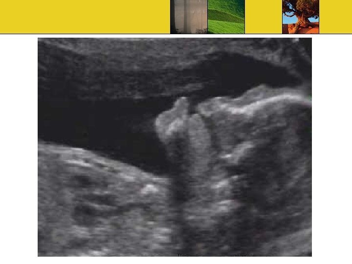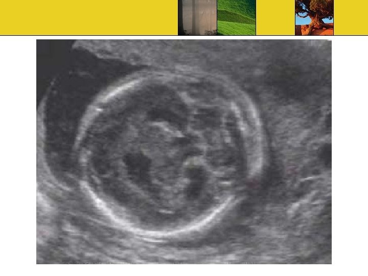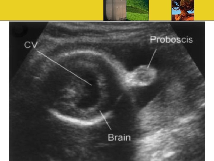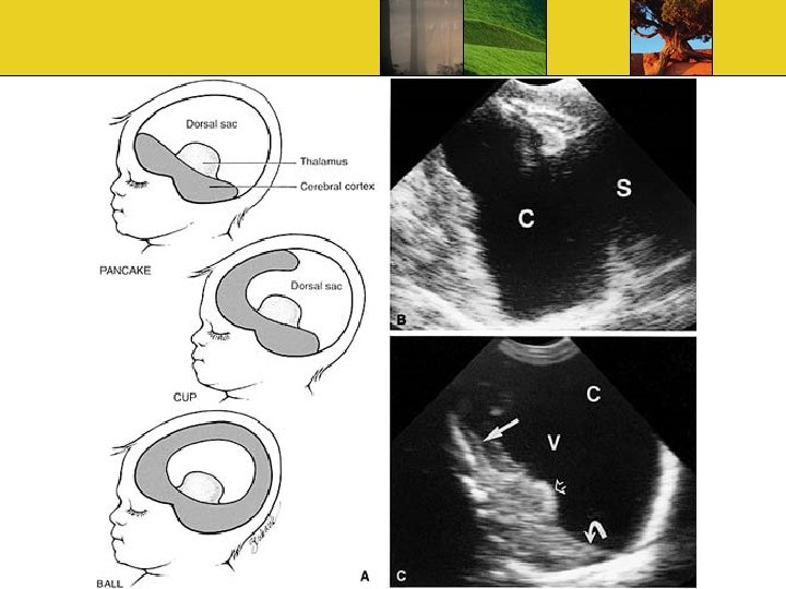 Ultrasound Findings Absence of butterfly sign Single ventricle Absent midline structures Fused thalami Large dorsal sac Remaining brain has 3 appearance Pancake, Cup, Ball