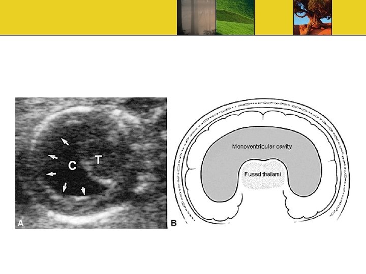 Best Diagnostic Clues 1 st trimester Absent of butterfly sign: Abnormal appearance of choroid plexus 2 nd~3 rd trimester Fused thalami with mono-ventricle