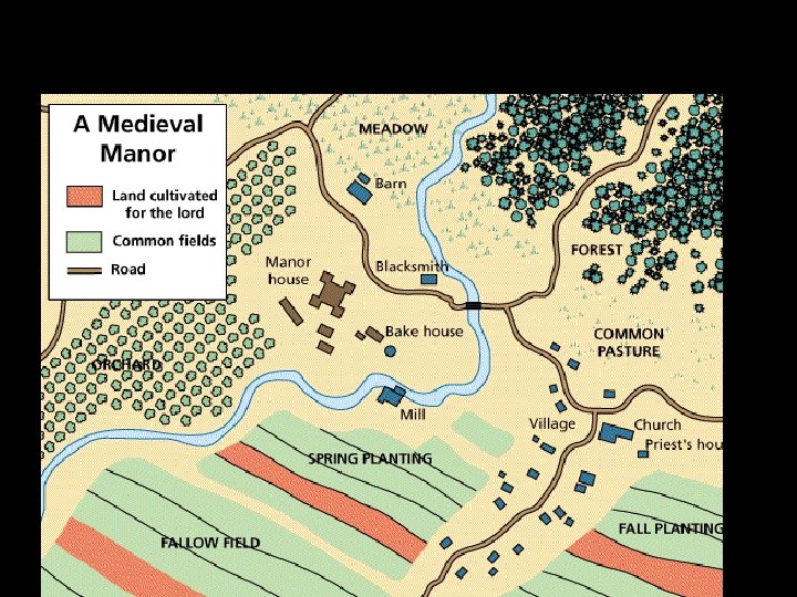 FEUDAL SYSTEM-inheritance • When a Lord/Vassal died, the land usually passed to his oldest son, and this son pledged “fealty” to father’s Lord. • The passing of the whole estate to the oldest son was called “primogeniture”. – In the earliest part of the Middle Ages, sometimes all sons shared. This was found to weaken the estate. By 1100 AD, primogeniture was the custom. – Younger sons often became priests or looked for rich girls to marry. • If a noble only had a daughter, the land passed to her as her dowry. It was hers in one sense, but whoever she married had control of it.