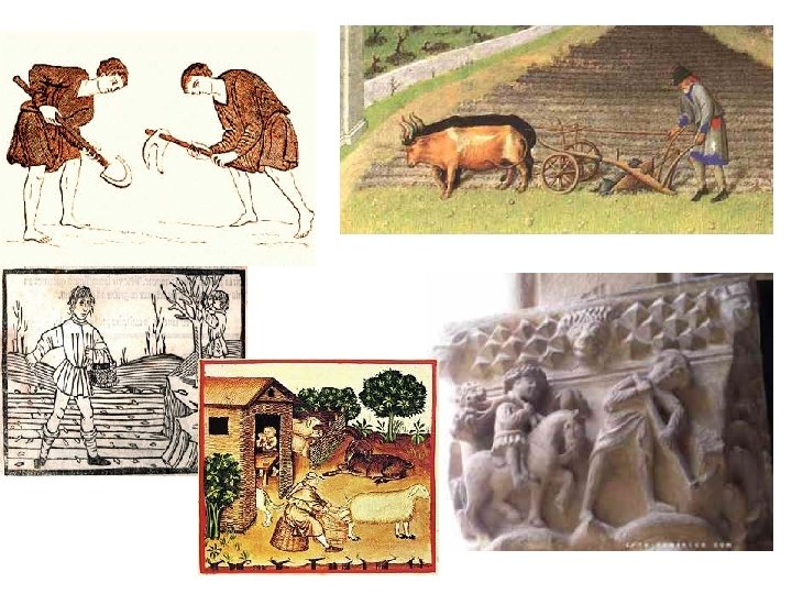LOS CAMPESINOS DEBEN AL SEÑOR: Al llegar la Pascua, un cordero; al segar el heno, seis piezas de moneda; al segar el trigo, una comida y una medida de avena; al vendimiar, doce denarios, tres panes y vino; al llegar la Cuaresma, un capón; a media Cuaresma, seis monedas. Cartulario de Saint Vincent de Macon.