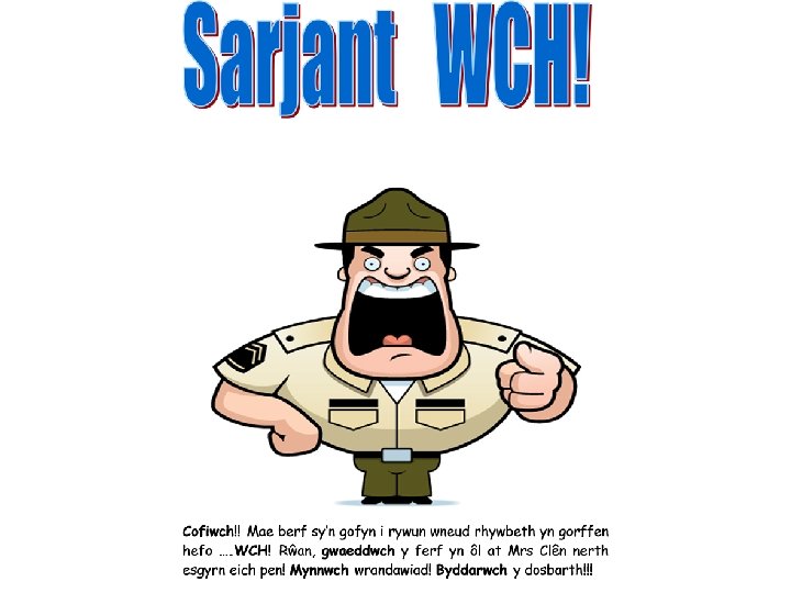 Cyfarwyddiadau Meini Prawf Cofia fod angen: • pennawd • defnyddio’r ferf yn gywir e. e. Torrwch, gludwch • cysyllteiriau e. e. Yn gyntaf, wedyn, yna. . • trefnu’n gywir