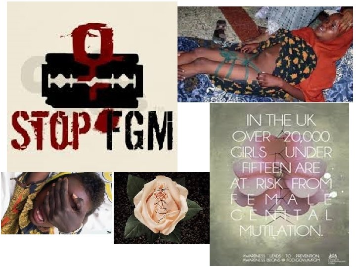 How FGM happens • FGM is usually performed by someone with no medical training. Girls are given no anaesthetic, no antiseptic treatment and are often forcibly restrained. • The cutting is made using instruments such as a knife, pair of scissors, scalpel, glass or razor blade