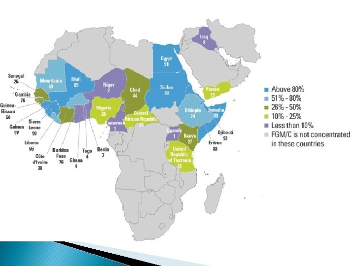 Highly variable FGM has also been documented in communities including: ◦ ◦ ◦ ◦ ◦ Iraq Israel Oman the United Arab Emirates the Occupied Palestinian Territories India Indonesia Malaysia Pakistan