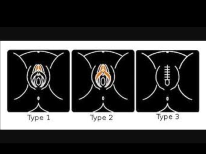 WHO 4 types � � Type 1: Clitoridectomy: partial or total removal of the clitoris and, in very rare cases, only the prepuce Type 2: Excision: partial or total removal of the clitoris and the labia minora, with or without excision of the labia Type 3: Infibulation: narrowing of the vaginal opening through the creation of a covering seal. The seal is formed by cutting and repositioning the inner, or outer, labia, with or without removal of the clitoris. Type 4: Other: all other harmful procedures to the female genitalia for non-medical purposes, e. g. pricking, piercing, incising, scraping and cauterizing the genital area.