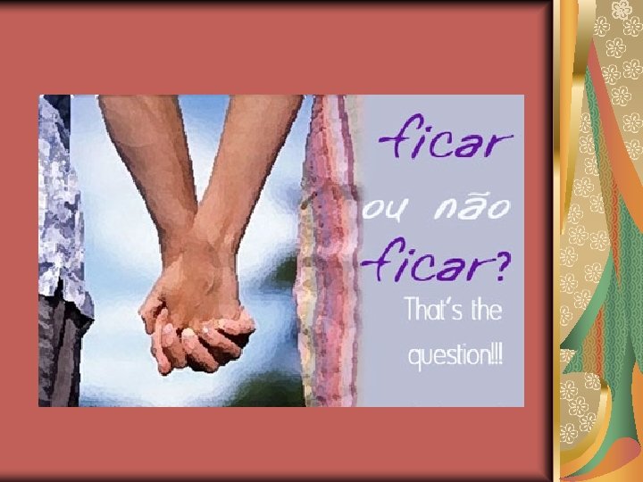 Para aqueles que ficam parece ser muito interessante o “FICAR”. Ficar nas festinhas com o rapaz ou com a moça. Porém aqui vão alguns fatos que podem ajuda-los a refletir sobre o “FICAR”: Se a jovem ficar com vários rapazes, esta, corre o risco de ficar falada como a galinha do pedaço, etc. . .