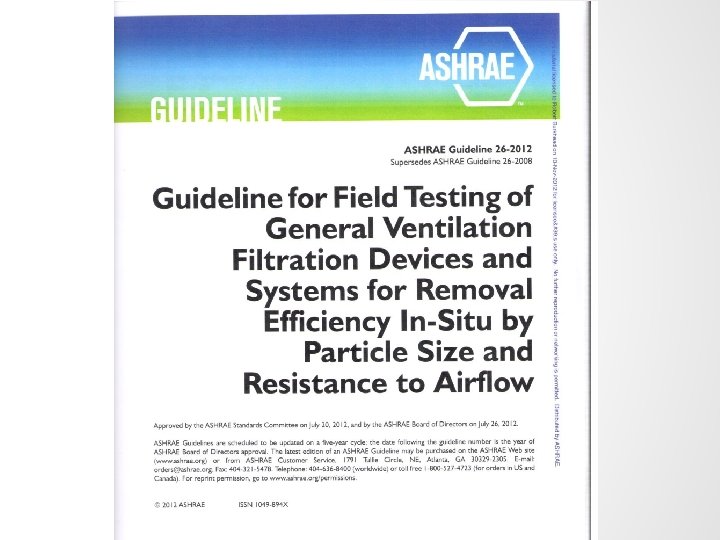 Field Testing ASHRAE Guideline 26 -2012 Guideline for Field Testing of General Ventilation Filtration Devices and Systems for Removal Efficiency In-Situ by Particle Size and Resistance to Airflow Blue Heaven Technologies, Inc. Louisville, KY www. blueheaventech. com