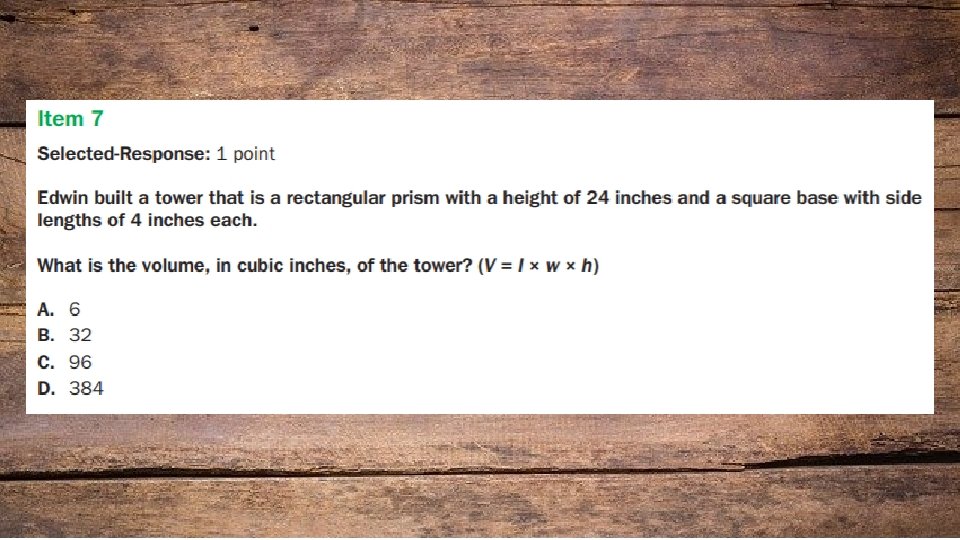 Answer- Selected Response question.