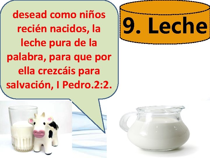 desead como niños recién nacidos, la leche pura de la palabra, para que por ella crezcáis para salvación, I Pedro. 2: 2. 9. Leche