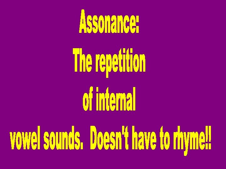 Consonance When consonants repeat in the middle or end *Please note that we of words. will only focus on internal consonance on the test. Vowels: a, e, i, o, u, and sometimes y. Consonants: all other letters. Examples Mammals named Sam are clammy. Curse, bless me now! With fierce tears I prey.