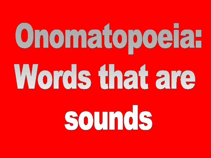 Onomatopoeia: When a word’s pronunciation imitates its sound. Examples Fizz Clink Vroom Buzz Hiss Beep Woof Boom Zip