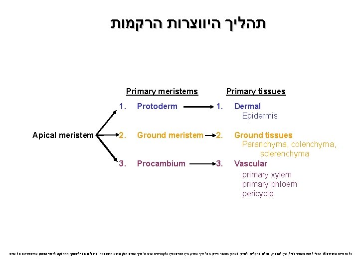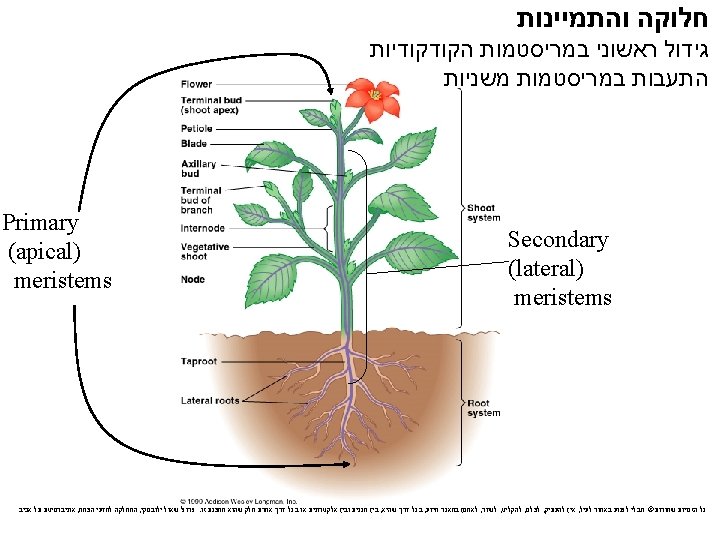 מריסטמת הנצר Leaf primordia Young leaf Shoot apical meristem Developing vascular strand Axillary bud meristems Figure 35. 16 0. 25 mm © 2015 Pearson Education Ltd