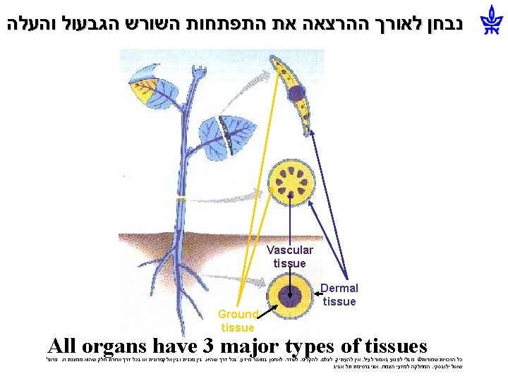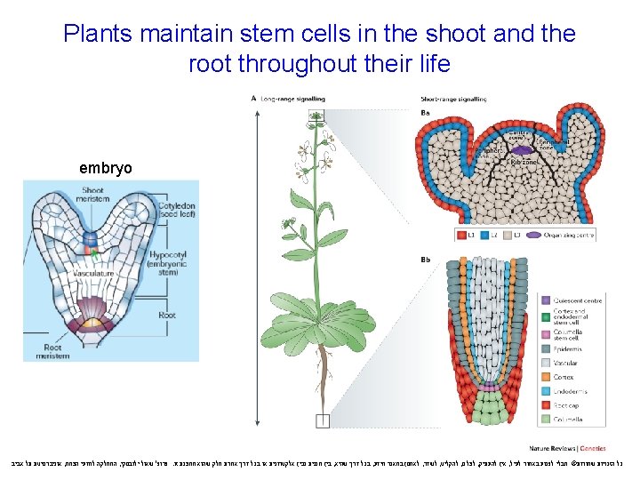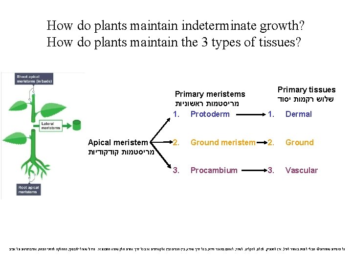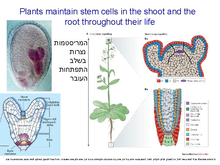 After germination, the shoot apical meristem makes leaves Leaves Shoot apex at germination Post-embryonic leaf formation Leaves Cotyledons Reprinted by permission from Macmillan Publishers, Ltd: NATURE. Long, J. A. , Moan, E. I. , Medford, J. I. , and Barton, M. K. (1996) A member of the KNOTTED class of homeodomain proteins encoded by the STM gene of Arabidopsis. Nature 379: 66 -69. 44 כל הזכויות אוניברסיטת תל אביב , המחלקה למדעי הצמח , פרופ' שאול ילובסקי. בין מכנית ובין אלקטרונית או בכל דרך אחרת חלק שהוא ממצגת זו , בכל דרך שהיא , לאחסן במאגר מידע , לשדר , להקליט , לצלם , אין להעתיק , שמורות© מבלי לפגוע באמור לעיל