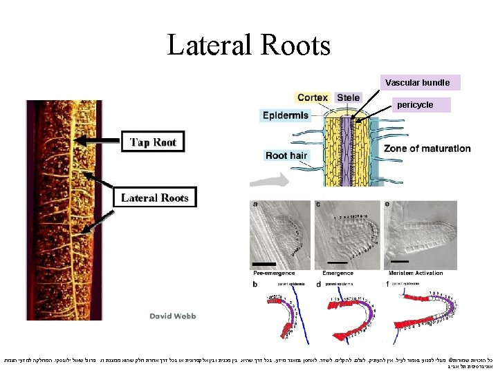 כיצד מתפתחים שורשים צדדים ? האם יש בכך בעיה חתך רוחב בשורש Emerging lateral root 100 μm Epidermis Lateral root Cortex Vascular cylinder 1 Pericycle 2 3 Lateral roots arise from within the pericycle, the outermost cell layer in the vascular cylinder © 2015 Pearson Education Ltd